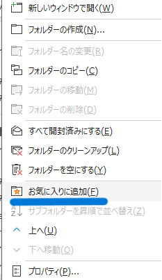 Outlookでは、よく使うフォルダをお気に入りに登録する事できますが、このリストから削除されただけで実際のフォルダ自体は残っていることがあります。