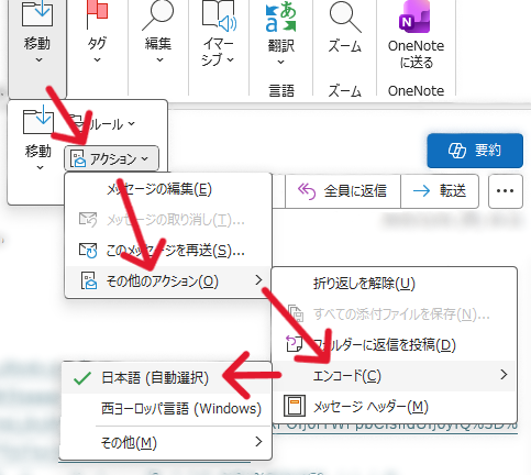 Outlookで文字化けが起きた場合は、以下を確認することで改善できる可能性が高いです。
