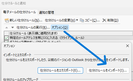 これで以前のOutlook環境と同じルールが新しいPCに適用されます。