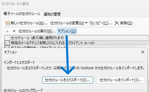 仕分けルールをバックアップして新しいPCで使用する方法は